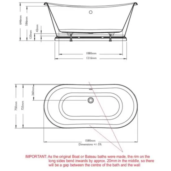 - Model: Boat Bath With Aluminium Plinth 1580mm BAS763